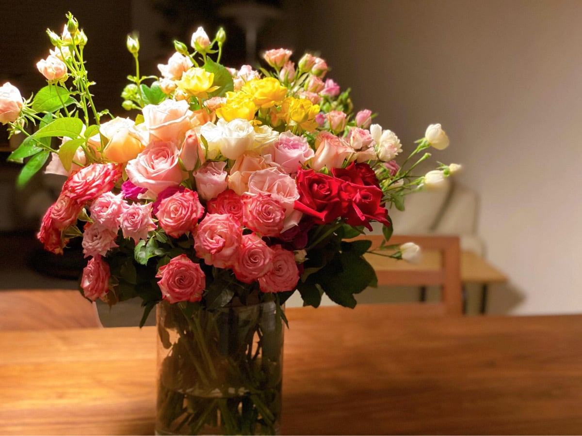 薔薇の種類や色はお任せになりますが、普段はウエディング用であり、誰もが知る一流ホテルへ納品しているものなので、品質はとても良いです。ただし、配送状況により、変化がある場合もありますので、完璧を求める方はご購入をお控えくださいませ。